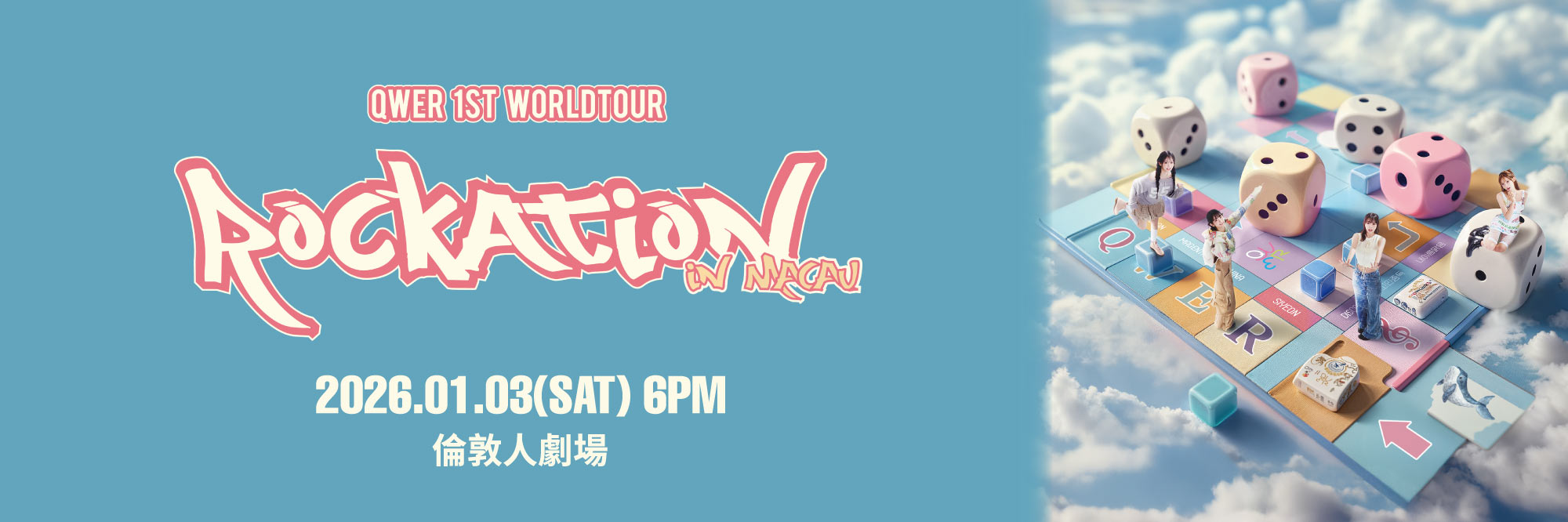 準備迎接激動人心的夜晚!QWER首場世界巡演<ROCKATION>登陸澳門,將以他們獨特的搖滾音浪和爆發性的舞台能量點燃全場。不容錯過!